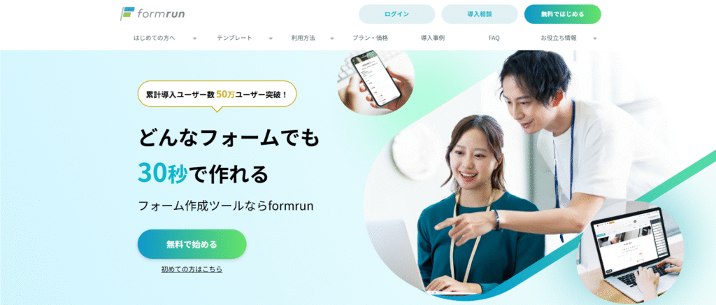 formrunの無料プランは、個人利用や、有料プラン導入前の機能確認などに適しています。